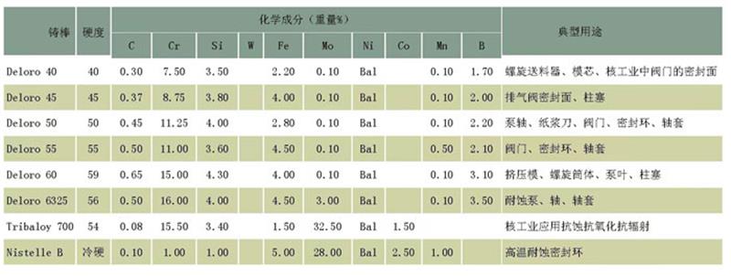 用途:用于高温下要求耐磨及耐蚀的工况条件保持良好性能的场合。例如汽车、内燃机气门、高温高压阀门、热剪切刀刃、轴承的内外环、热锻模等堆焊。