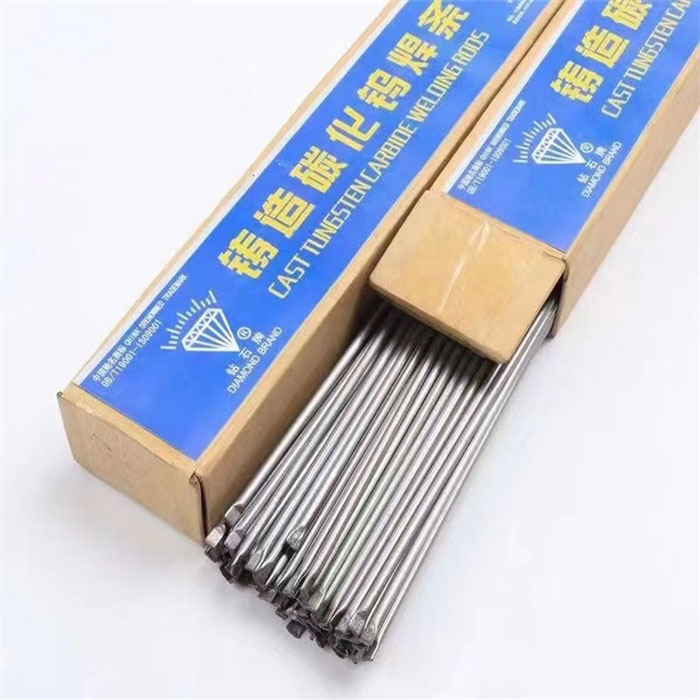 铸造碳化钨焊条: 铸造碳化钨焊条又称铸造碳化钨合金焊条管。主要成分为W2C和WC合金颗粒,是含钨粉、硼粉及合金粉末组成的高气焊条,硬度93HRA,熔点1600-1800度,采用氧-乙炔焰堆焊,堆焊温度一般在1600-1700℃,具有较高的性。